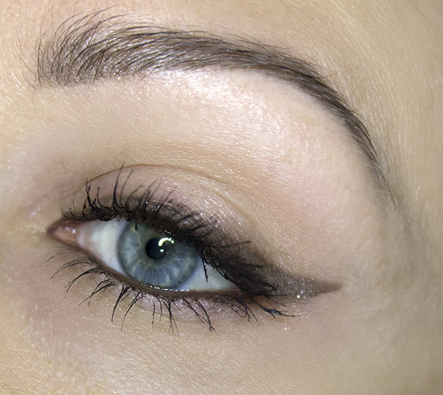 Мэйк 1. Оттенок Get Crackin (тот самый провальный оттенок. Матовый с блестками, в котором блески рассыпаются по всему лицу) нанесен на карандашную стрелку: